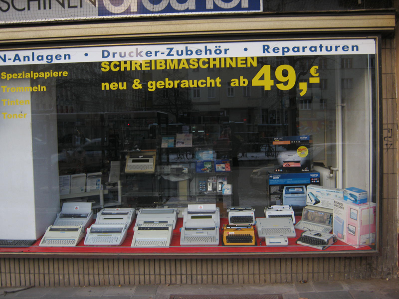 Deze winkel heet ‘Arndt Büromaschinen” en bevindt zich in de Gneisenaustrasse 91 (postcode 10961) in Berlin-Kreuzberg, tegenover U-Bahn station Gneisenaustrasse (U-7).