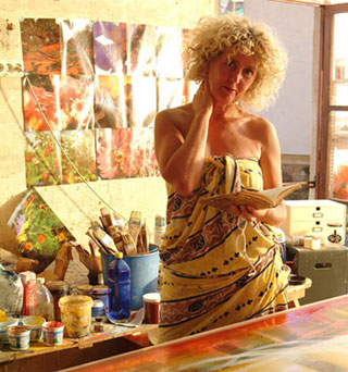Santanyi, 2004 – Gemma Leys, de Nederlandse kunstenares uit Santanyí, timmert momenteel behoorlijk aan de weg. De trouwe lezers van dit blad kunnen zich waarschijnlijk nog wel herinneren aan haar “Brieven uit Bali”, die zij na haar bezoek aan Indonesië in Mallorca Vandaag publiceerde. Nu, bijna twee jaar later, heeft de kunstenares met eigen galerie even genoeg van de grote reizen. “In India, Nepal en Indonesië kom je weer even met je voeten op de grond en zie je hoe goed wij het hebben met onze vrijheid van meningsuiting en dat we kunnen kiezen wat we willen. Dat is leuk om af en toe te zien. Maar nu ben ik verliefd op Amsterdam”, vertelt Gemma Leys eind april in de tuin van haar galerie in Santanyí.