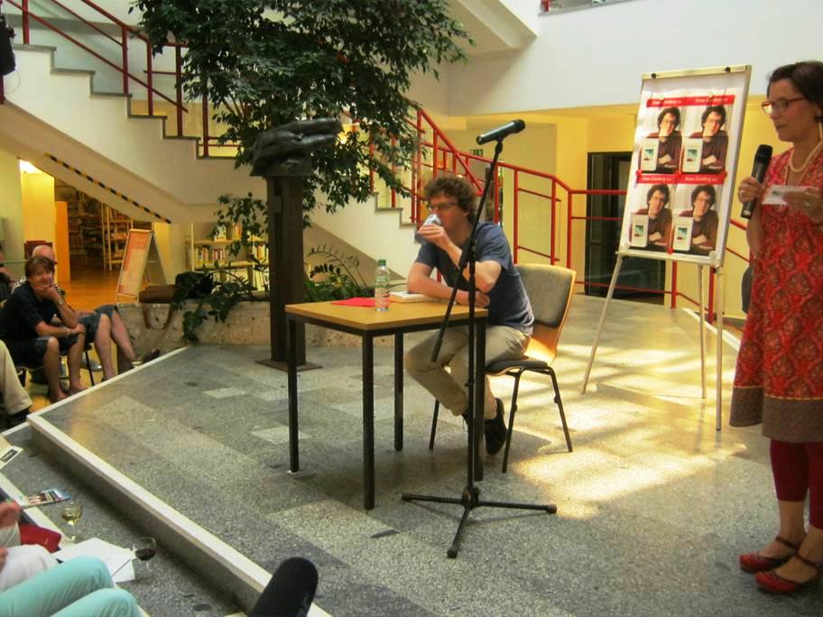 Station Raoul-Wallenberg Straße, tijd om uit te stappen. Tussen de hoge flatgebouwen loop ik op deze zonnige vrijdagavond richting de bibliotheek. Ik hoop dat ik de enige bezoeker ben, want dan heb ik natuurlijk een bijzonder verhaal te vertellen. Aan de andere kant kan ik me dat niet echt voorstellen. Tegen half acht loop ik het Freizeit Forum binnen, een gebouw dat niet alleen over een bibliotheek maar ook over een enorm zwembad beschikt. Omringd door een lichte chloorlucht lees ik op het informatiebord waarom Arnon Grunberg juist hier op bezoek komt. Hij was hier al eens in september 2013 te gast, in het kader van het internationale literatuurfestival. Die dag was er onvoldoende tijd om voor te lezen, vragen te stellen of te discussiëren. “Ik kom hier bij de presentatie van mijn nieuwe boek zeker weer terug”, beloofde de in New-York verblijvende Nederlandse schrijver destijds en zo geschiedde.