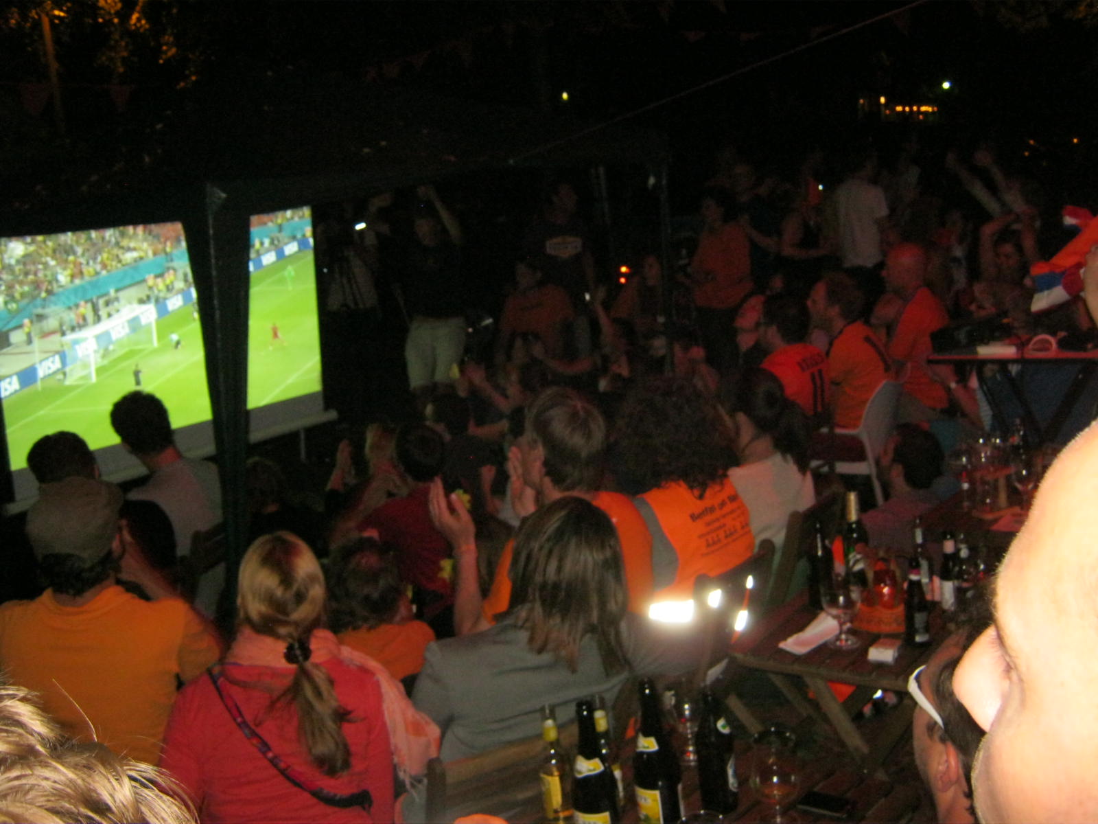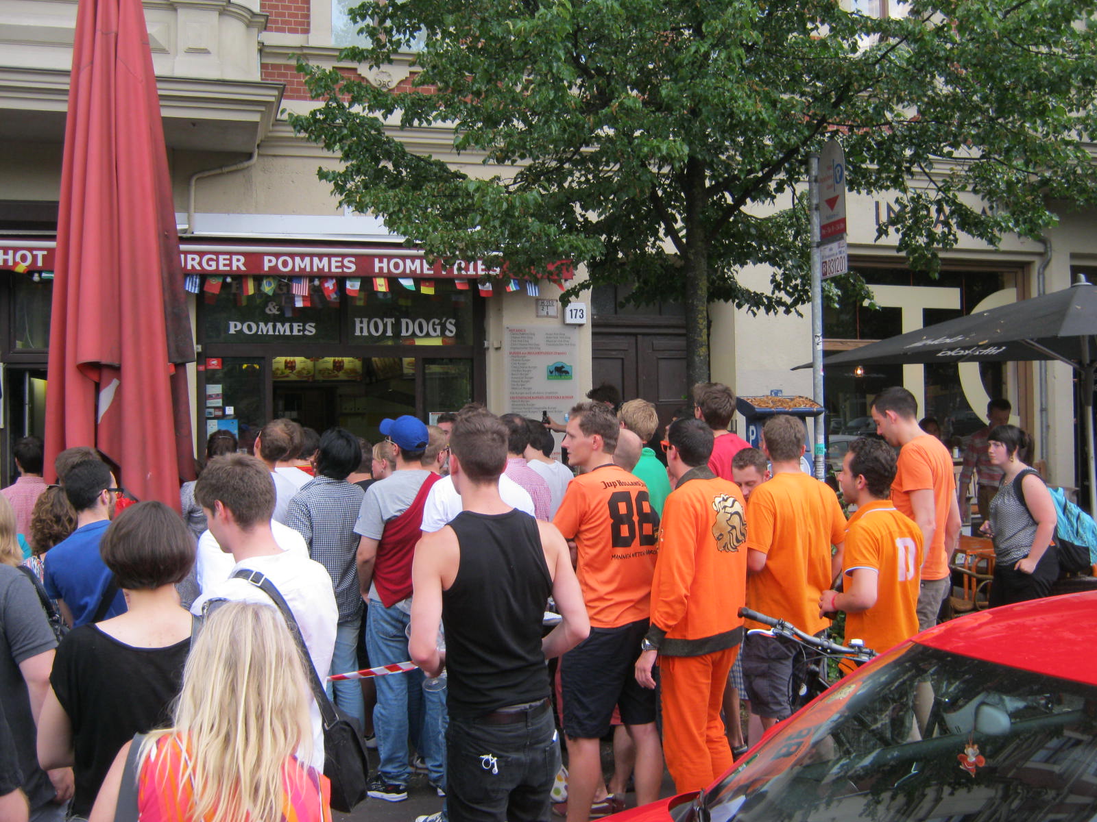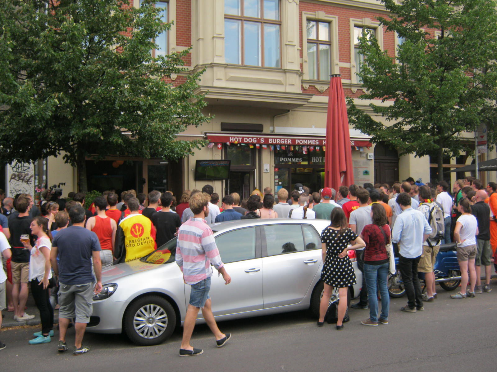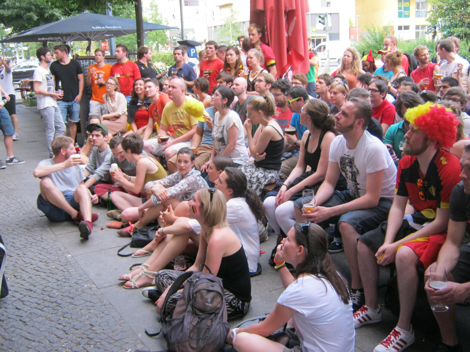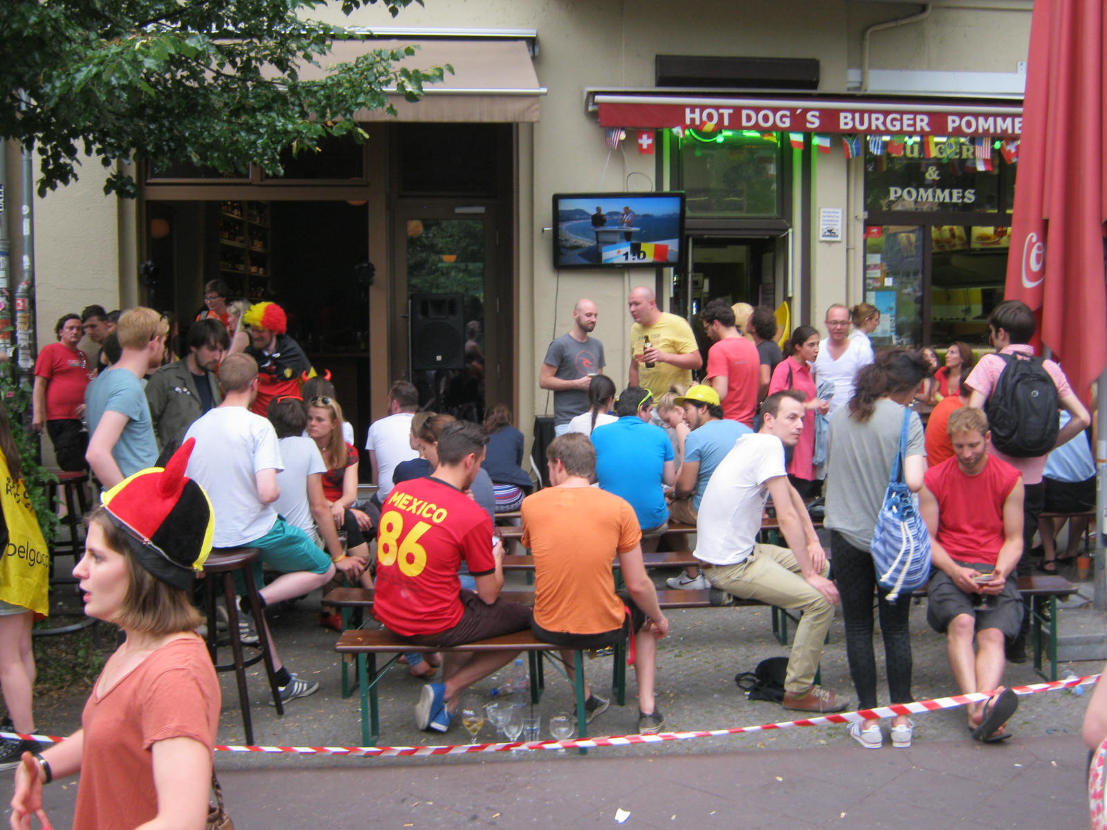 De Belgische en Nederlandse voetbalfans volgenden gisteravond de wedstrijden in de kwartfinale op diverse plekken in de hoofdstad. Zelf was ik bij bar Herman en bar Linda Carell, beiden in stadsdeel Prenzlauer Berg. Op beide plekken was de sfeer feestelijk en de spanning soms om te snijden. Helaas verloren de Rode Duivels en gelukkig ging het Nederlands elftal met de hakken over de sloot verder naar de halve finale.