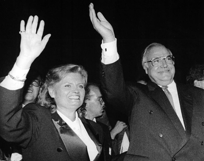 Hannelore en Helmut Kohl voor de Berlijnse Rijksdag op 3 oktober 1990.