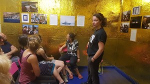 Het verhaal over de bovenstaande kennismaking met Sea-Watch lees ik die avond op één van de ingelijste brieven die naast foto’s deel uitmaken van de Black Box expositie in het Erdemuseum. Fabienne vertelt deze avond ook zelf over die kennismaking en dat ze vervolgens een maand lang op de oude Nederlandse viskotter Sea-Watch 1 onderweg was. Ze legt de bezoekers uit dat de media-aandacht over de gebeurtenissen op de Egeïsche Zee sinds de deal tussen de EU en Turkije in 2016 afnam. Die route naar de Griekse eilanden is volgens haar echter nog steeds een actieve route die vaak gebruikt wordt om Europa te bereiken. Het doel van Sea-Watch is simpel: voor anker gaan en Frontex, de NATO en de Griekse kustwacht op de vingers kijken en in de gaten houden hoe men hier te werk gaat. “Ze schijnen er namelijk methodes op na te houden die in strijd zijn met de wet en die als doel hebben zo weinig mogelijk boten toe te laten. Daarbij zetten ze wel mensenlevens op het spel, maar niet die van zichzelf. Het is voor ons van belang om deze toestanden aan de buitenwereld bekend te maken”, aldus Fabienne.