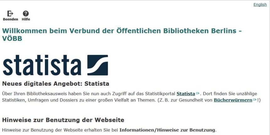 De bibliotheek is Berlijn biedt werkelijk héél veel. Sinds kort kun je met je bibliotheekpas ook inloggen op de website van Statista, een van de grootste statistiek portals ter wereld. Je hebt toegang tot de gegevens van marktonderzoeken en opiniepeilingen op heel veel gebieden. Statista biedt meer dan 1.000.000 statistieken over meer dan 80.000 verschillende onderwerpen uit meer dan 18.000 bronnen aan. Statista geldt ook als een van de meeste succesvolle statistiek databanken ter wereld.