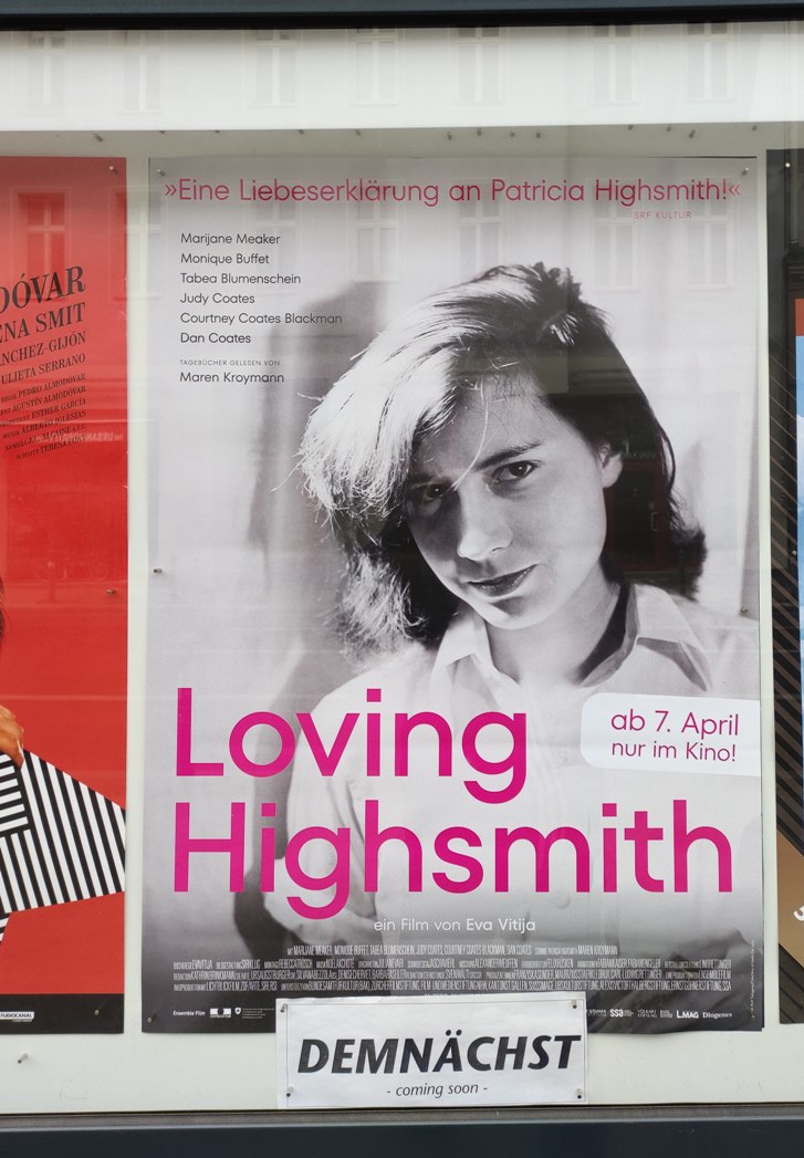 Vanaf donderdag 7 april zal de documentaire “Loving Highsmith” in de Duitse bioscopen te zien zijn. Twee dagen eerder vindt in Cinema Paris aan de Berlijnse Kurfürstendam een premièrevoorstelling plaats. Vóór aanvang van de film zullen de drie prominente Highsmith fans Dunja Hayali, Maxi Häcke en Hanns Zischler sleutelpassages uit romans van Highsmith voorlezen. De presentatie van deze avond, die inmiddels is uitverkocht, zal in handen zijn van Petra Gute. Na afloop van de film spreekt zij met de regisseuse Eva Vitija.