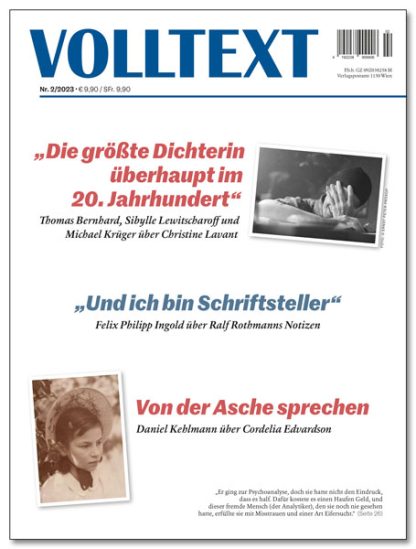 In de actuele uitgave van het Oostenrijkse literaire tijdschrift VOLLTEXT wordt veel aandacht besteed aan de Oostenrijkse dichteres Christine Lavant. De aanleiding is de biografie Ich bin maßlos im allem die in september bij Wallstein Verlag verschijnt. Hij is geschreven door Klaus Amann.
