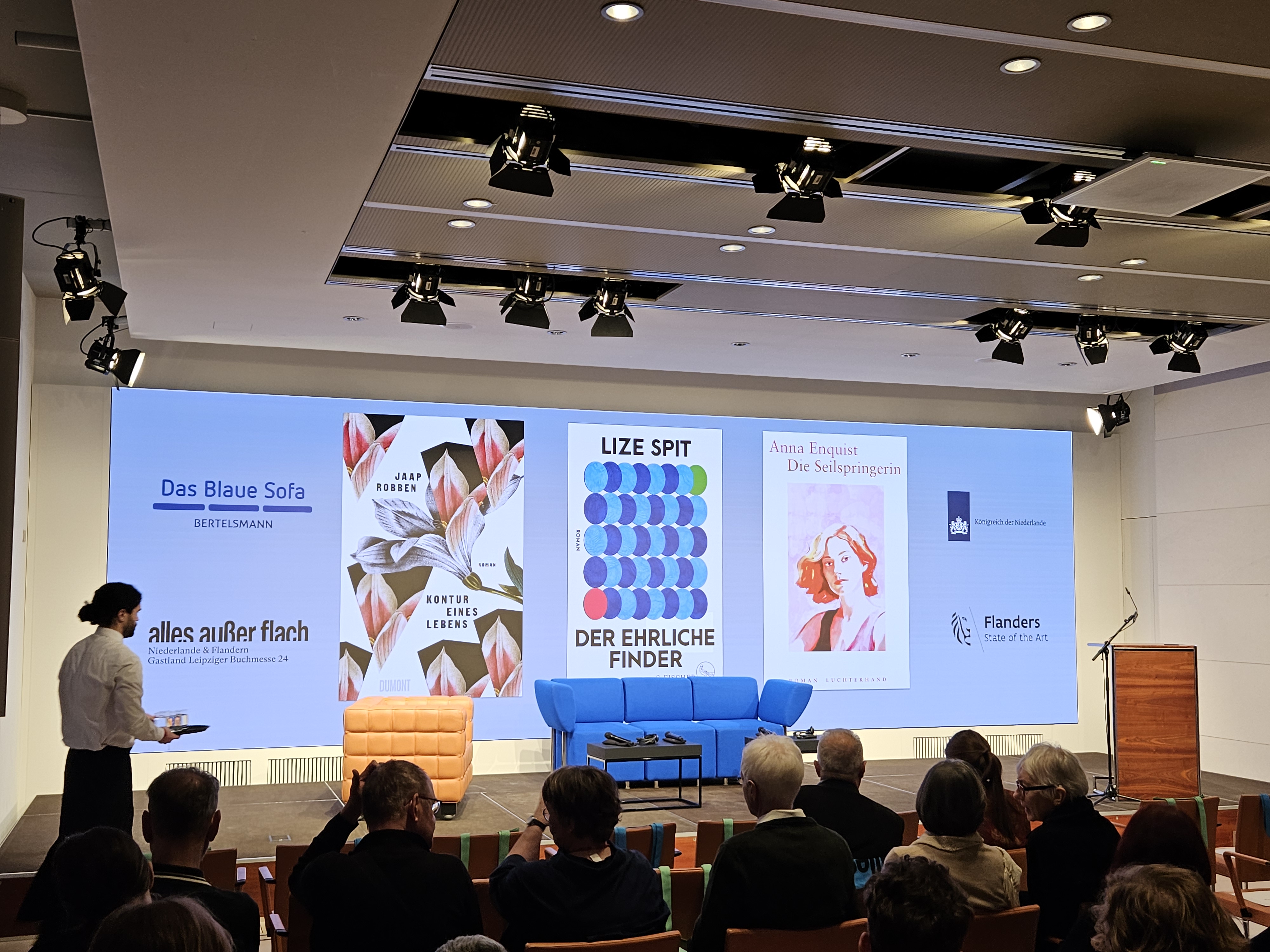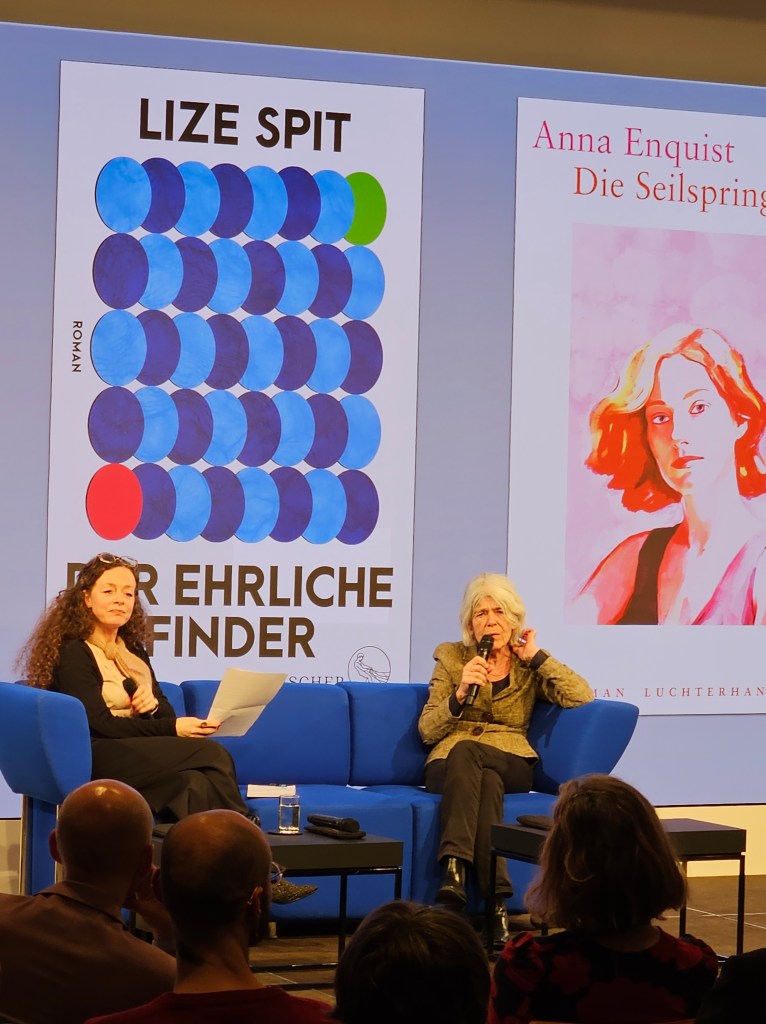 In het kader van de naderende Leipziger Buchmesse waren vanavond in Berlijn drie schrijvers van de partij op een literaire avond in het “Kommandantenhaus” (nu vertegenwoordiging van Bertelsmann), gelegen aan Unter den Linden nummer 1. Lize Spit vertelde over de roman “Der ehrliche Finder” (boekenweekgeschenk De eerlijke vinder), Anna Enquist over “Die Seilspringerin” (Sloop) en Jaap Robben over “Kontur des Levens” (Schemerleven).