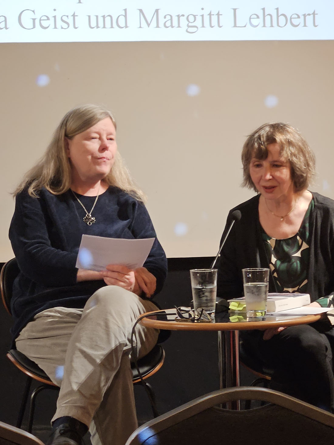 Gisteravond presenteerde de Duitse dichteres Sylvia Geist in de Berlijnse Lettrétage haar eerste roman Weißes Wasser en sprak over het boek met haar uitgeefster Margitt Lebhert.