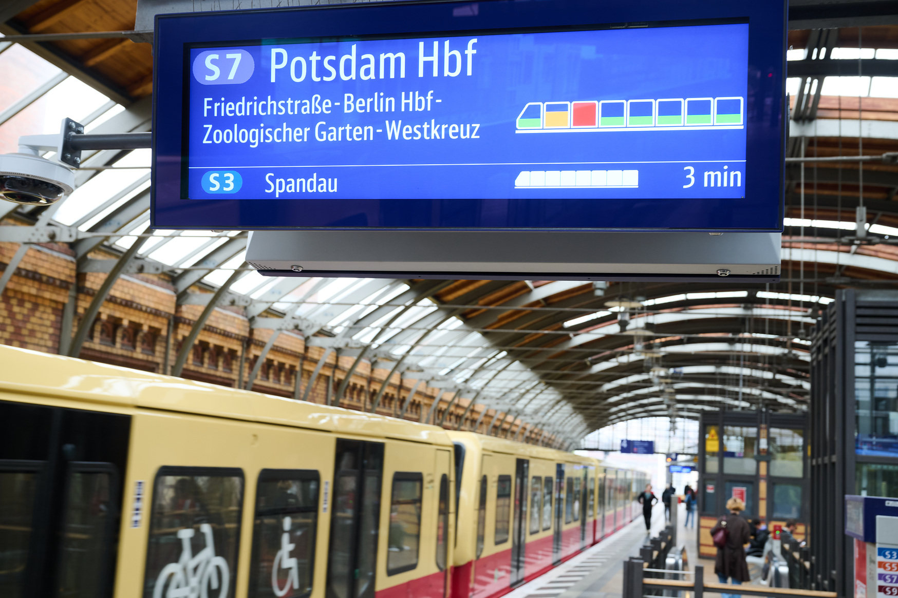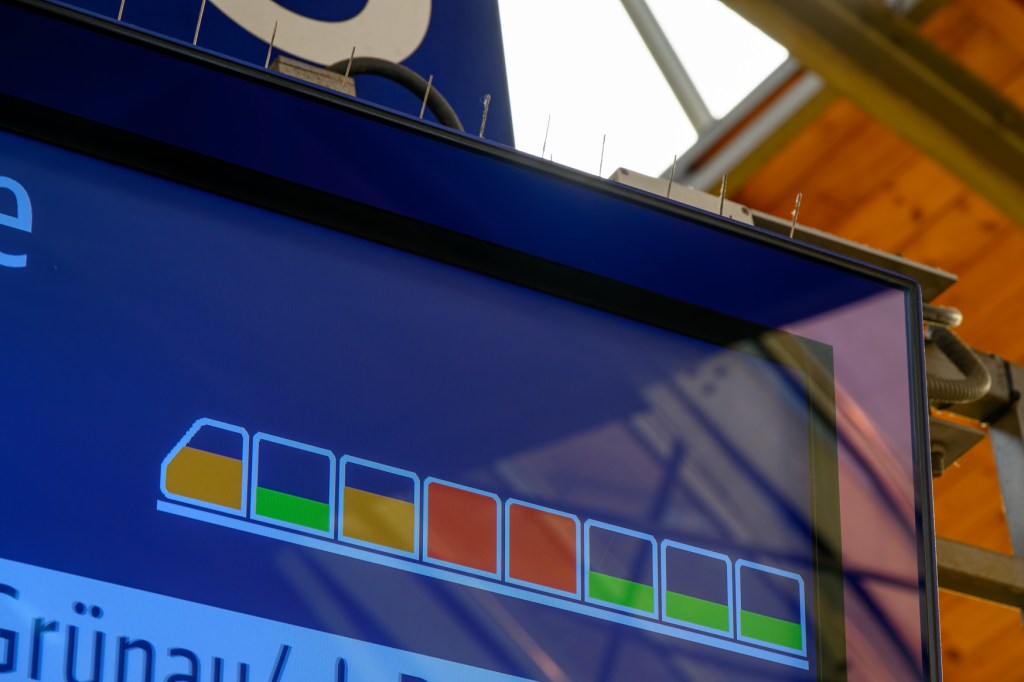 Op deze stations geven de vertrekborden aan hoeveel ruimte er nog in de afzonderlijke S-Bahn treinstellen beschikbaar is. Groen betekent veel ruimte, geel staat voor gemiddelde capaciteit en rood betekent dat het druk is in het desbetreffende rijtuig.