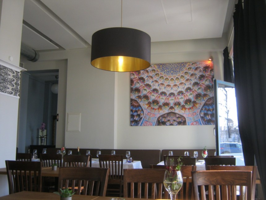 Eerder schreef ik in deze rubriek al over het restaurant Les Solistes waar de Belgische chef Roel Lintermans in de potten roerde. Eind vorig jaar zette deze ‘Berliner Meisterkoch 2015’ een nieuwe stap in zijn glansrijke carrière, want op dit moment is hij keukenchef van het befaamde steakrestaurant Grill Royal in Berlin-Mitte. Dit etablissement ligt op loopafstand van het Friedrichstadt Palast en station Friedrichstrasse. Je bereikt het via een trap naar beneden vanaf de Friedrichstrasse. Onderaan bevind je je direct naast de rivier de Spree en op het geliefde terras. Grill Royal is de thuishaven van succesvolle galeristen, kunstenaars, mensen uit de media en de film- en televisiewereld. Scarlett Johansson, Leonardo DiCaprio en George Clooney kennen hier vlot de weg. Eenmaal binnen, waan je je in een metropool zoals New York, Londen of Tokio. Moderne kunstwerken, gestoffeerde banken, gedempt licht, wit gedekte tafels en drie glazen wijnkasten zorgen voor een optimale sfeer.