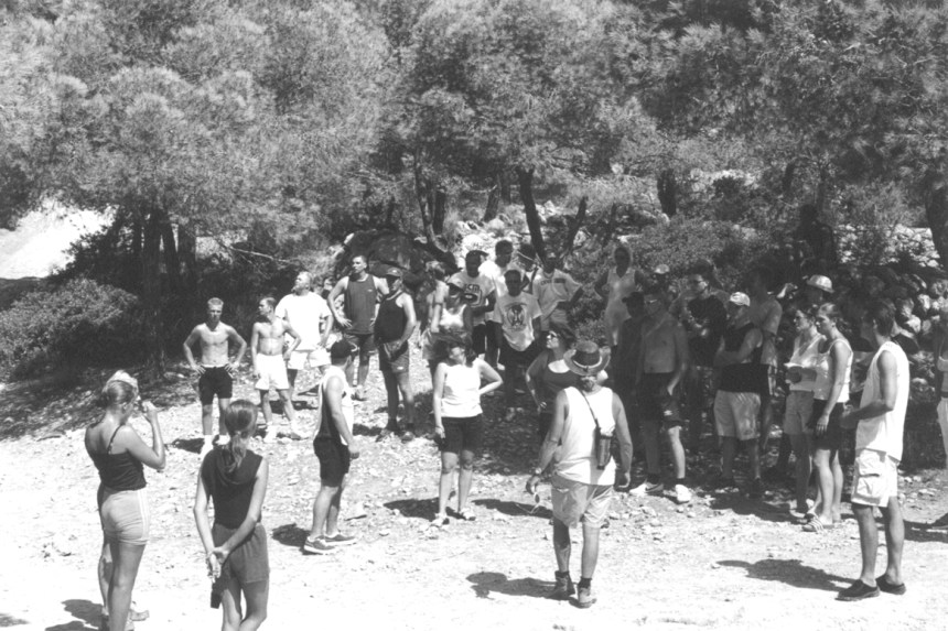 Boven op de berg is het tijd om iets te eten. Er liggen stukken stokbrood, boter, plakken kaas en worst. Zoals het bij een safari hoort maakt iedereen zelf zijn eigen broodje klaar. Terwijl Etienne video-opnamen maakt, dat doet hij gedurende de hele tocht, genieten de deelnemers van het eten en het uitzicht op de Middellandse Zee.